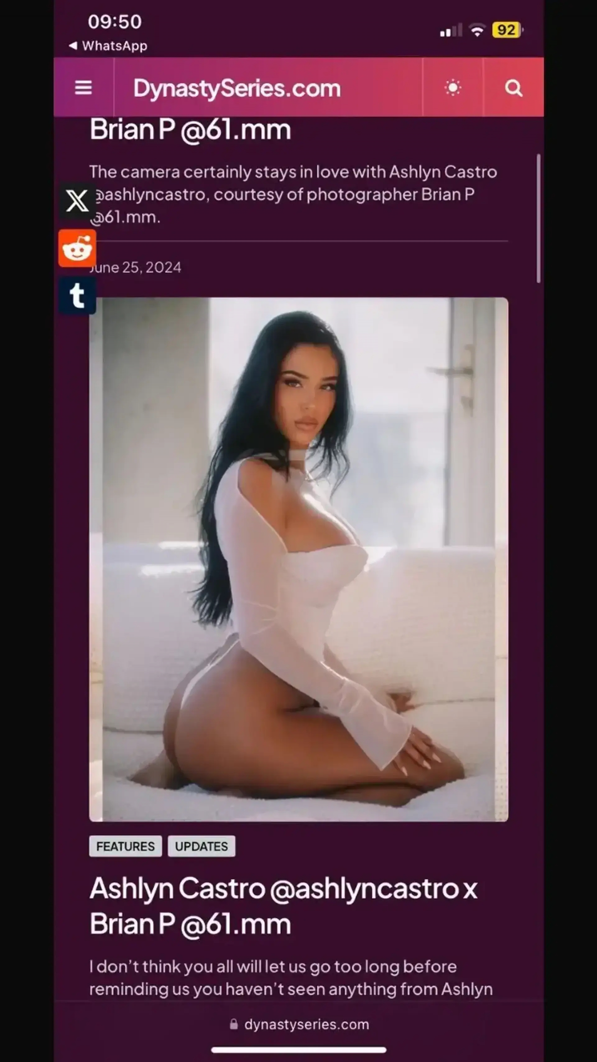 02月26日訊 tribuna等一些小道媒體傳聞消息,網(wǎng)友找到了Ashlyn Castro在一家高端應(yīng)召女網(wǎng)站的頁(yè)面,截圖顯示的時(shí)間是2024年6月。