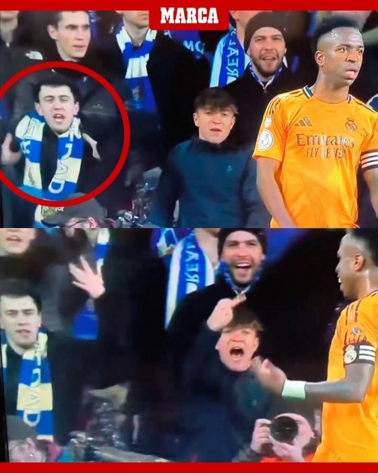 根據(jù)《馬卡報》報道,電視轉(zhuǎn)播鏡頭抓拍到本場比賽期間,一位皇家社會球迷種族歧視維尼修斯,對后者做出了猴子的手勢,維尼修斯則笑著用手勢示意再多說點。
