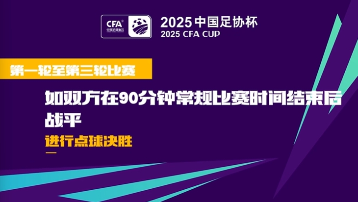 2025中國足協(xié)杯正賽將于3月14日開賽,12月5日結(jié)束,一共進(jìn)行7輪,為主客場單敗淘汰賽制,共64支參賽隊,進(jìn)行63場比賽,第1輪至第3輪若在90分鐘內(nèi)戰(zhàn)平將直接進(jìn)行點(diǎn)球大戰(zhàn),決賽將于12月5日在蘇州奧體中心進(jìn)行。