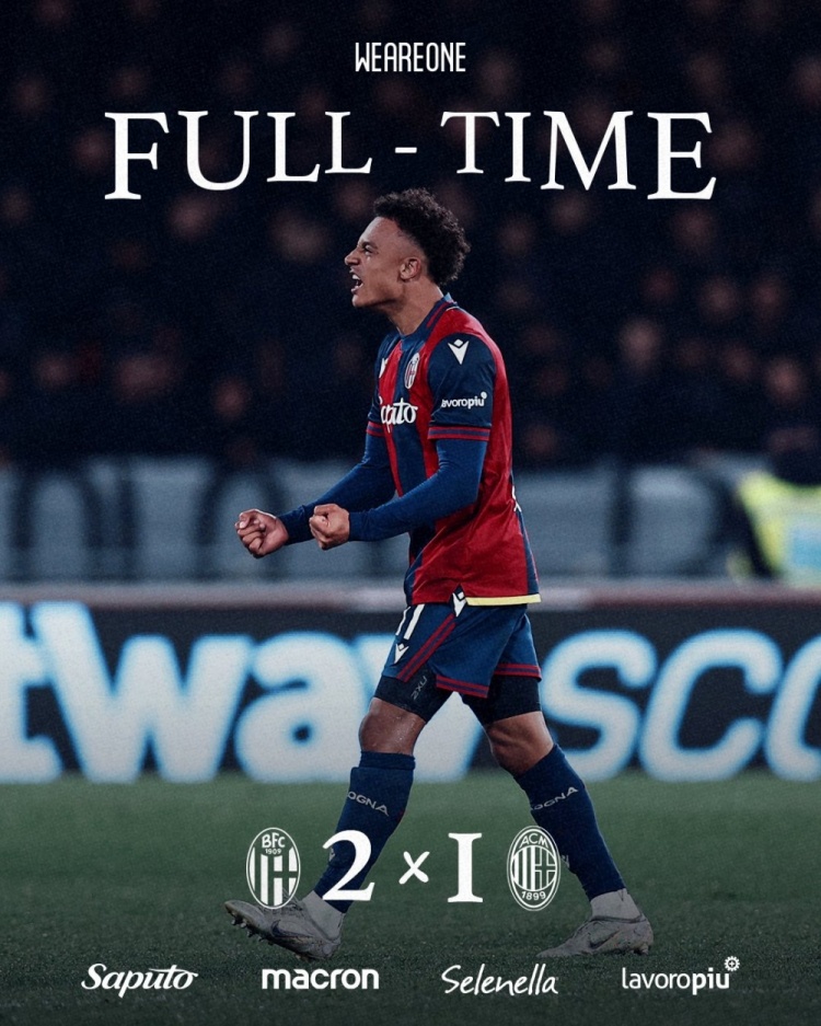 2月28日訊 意甲第9輪補(bǔ)賽,博洛尼亞2-1米蘭。