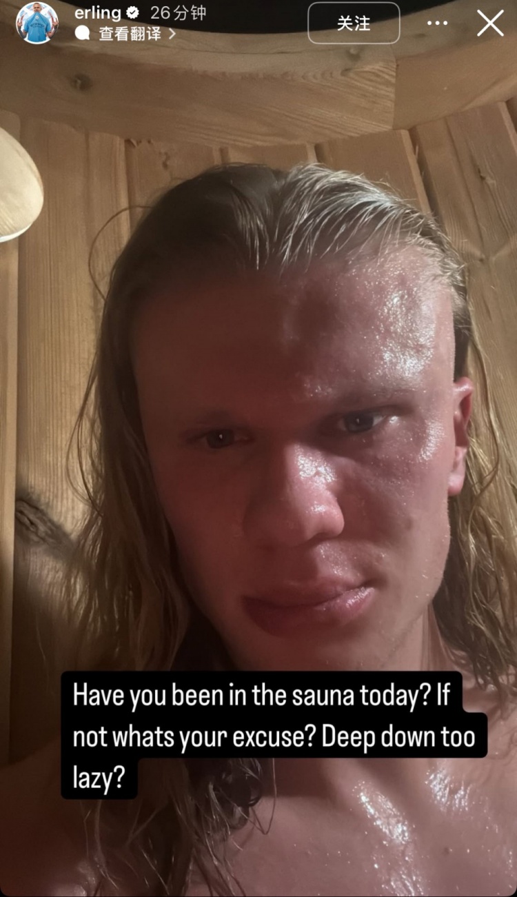 今天你蒸了嗎?哈蘭德更新社媒,曬出自己蒸桑拿的照片