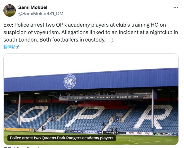 女王公園巡游者俱樂部向《郵報(bào)》發(fā)表聲明稱:“女王公園巡游者俱樂部了解到一起涉及兩名學(xué)院球員的事件。這兩名球員正在協(xié)助警方進(jìn)行調(diào)查。由于這是一項(xiàng)正在進(jìn)行的調(diào)查,俱樂部目前不會(huì)發(fā)表任何進(jìn)一步的評(píng)論。”
