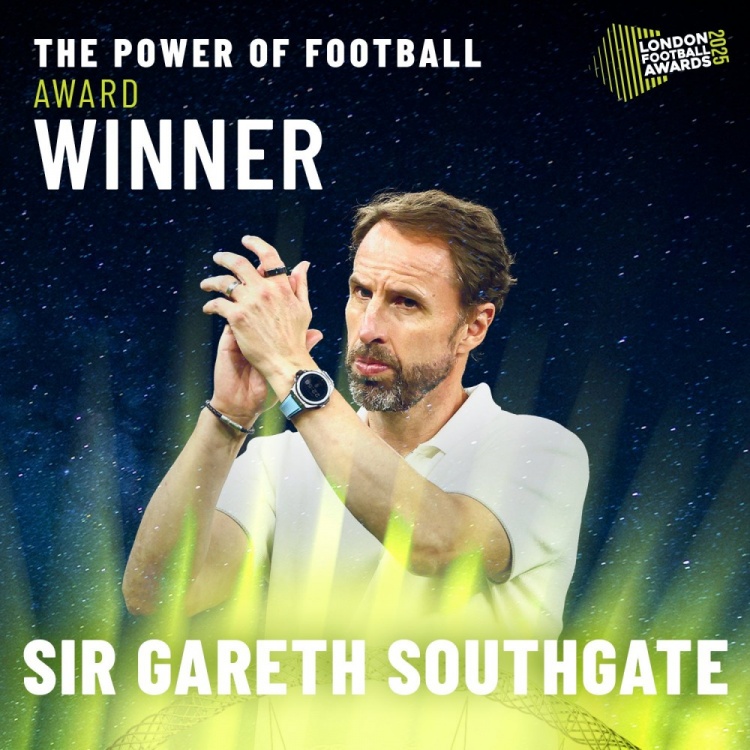 因在球場內(nèi)外影響力,索斯蓋特獲得倫敦足球獎(jiǎng)?lì)C發(fā)的足球力量獎(jiǎng)