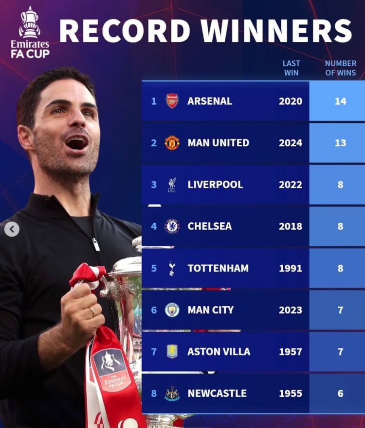 3月1日訊 本賽季足總杯才進(jìn)行到16強(qiáng)戰(zhàn)環(huán)節(jié),但BIG6球隊(duì)僅剩曼市雙雄仍未被淘汰。數(shù)據(jù)統(tǒng)計(jì)顯示,曼聯(lián)有望在今年追平阿森納的歷史奪冠紀(jì)錄。