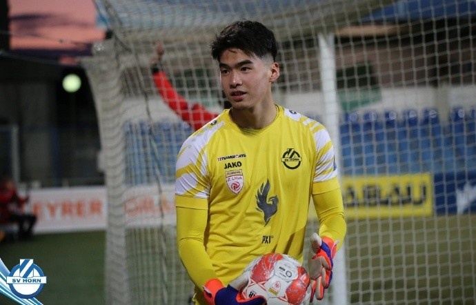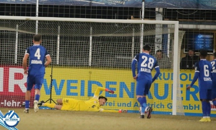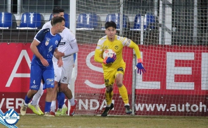 奧地利乙級聯(lián)賽,效力于霍恩隊的三鎮(zhèn)青訓門將劉邵子洋首發(fā)出場