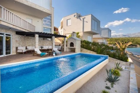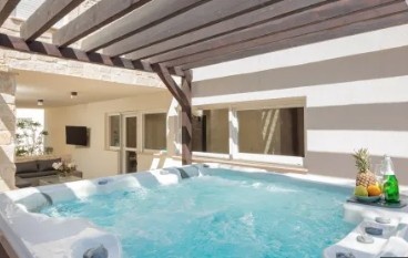 別墅配備了無邊泳池、桑拿房、按摩浴缸和健身房,室內(nèi)裝修豪華現(xiàn)代,主臥室擁有從落地窗眺望的壯麗海景,廚房設(shè)施齊全。