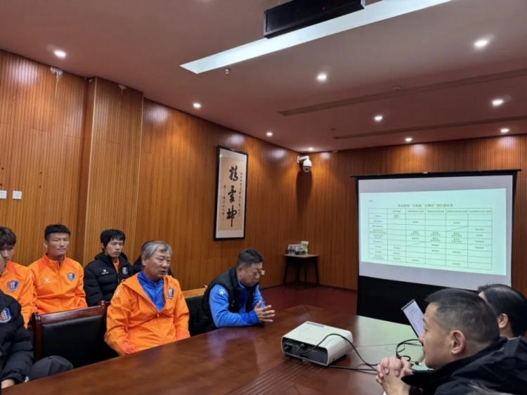 俱樂部執(zhí)行董事蘆寧江首先代表俱樂部歡迎球隊結(jié)束在外冬訓(xùn)返回瑞昌基地,然后向球隊詳細(xì)介紹了俱樂部的情況、部門機(jī)構(gòu)等,并重點(diǎn)傳達(dá)了江西省體育局、江西省足球協(xié)會2025賽季中國足球聯(lián)賽(江西賽區(qū))工作部署會議精神,強(qiáng)調(diào)嚴(yán)格落實聯(lián)賽工作“五見面,五到位”;狠抓賽風(fēng)賽紀(jì)建設(shè),做到誠信比賽、干凈比賽。