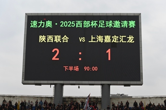 最終全場比賽結(jié)束,陜西聯(lián)合主場2:1戰(zhàn)勝上海嘉定匯龍,贏得速力奧·2025西部杯足球邀請(qǐng)賽首勝!