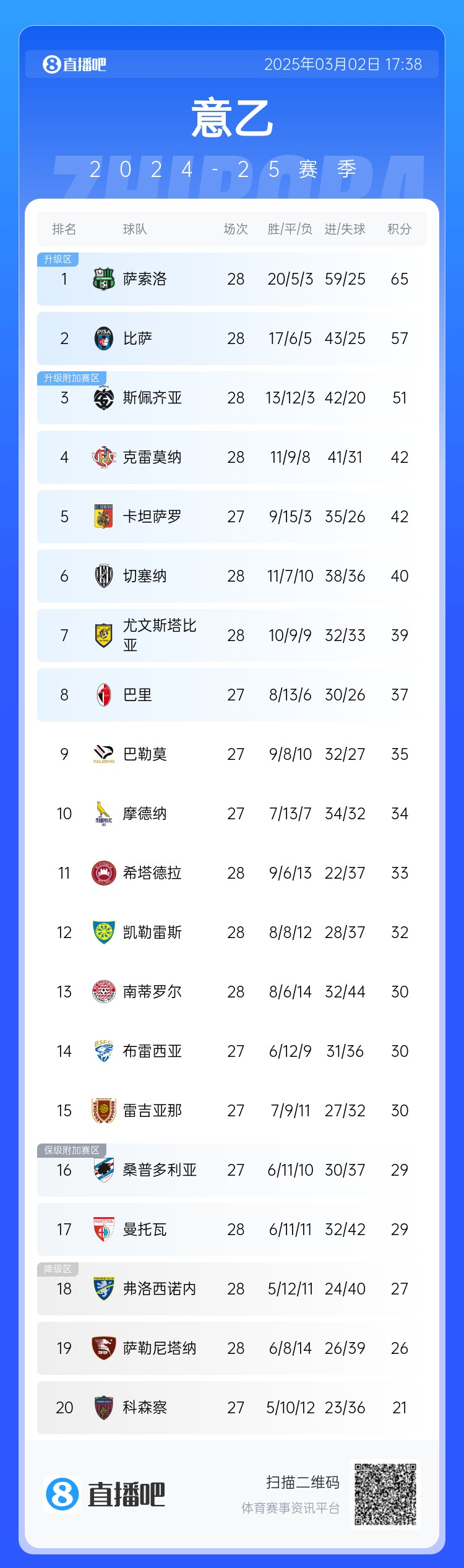 薩索洛要回來了——本輪意乙1-0擊敗第二比薩,領(lǐng)先第三14分
