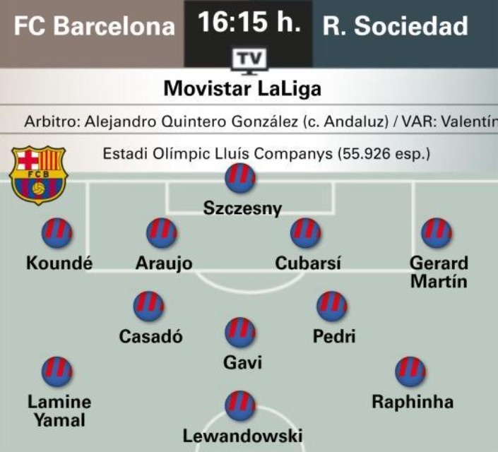 世體預(yù)測巴薩首發(fā):巴爾德輪休,馬丁、阿勞霍、卡薩多出戰(zhàn)