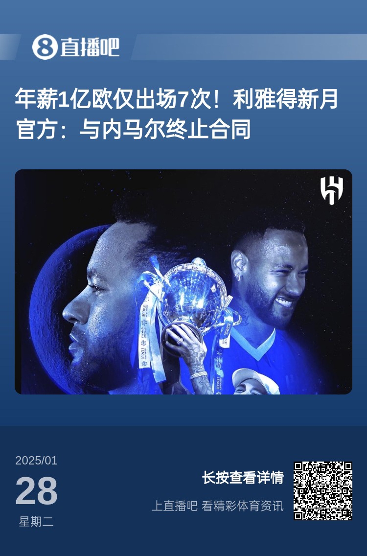 要錢何用?內(nèi)馬爾在新月年薪1億出場7次,免簽桑托斯1個月即追平