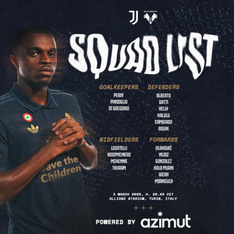 3月3日訊 北京時(shí)間3月4日凌晨3:45,2024-25賽季意甲聯(lián)賽第27輪,尤文圖斯將坐鎮(zhèn)主場(chǎng)迎戰(zhàn)維羅納。賽前,尤文官方公布了本場(chǎng)比賽球隊(duì)大名單,弗拉霍維奇領(lǐng)銜鋒線,中場(chǎng)僅4人。