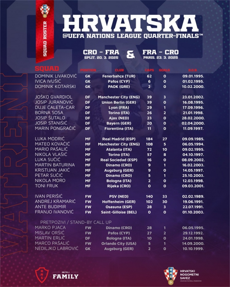 3月國際比賽日,克羅地亞將在歐國聯(lián)比賽中兩回合對陣法國隊。
