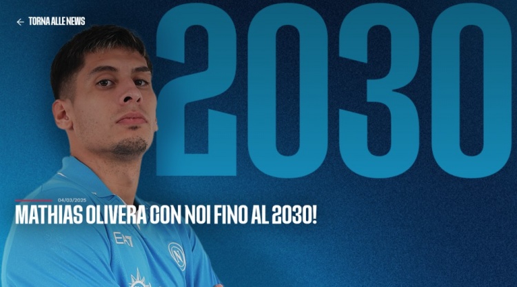 官方:那不勒斯與27歲烏拉圭左后衛(wèi)奧利維拉續(xù)約至2030年