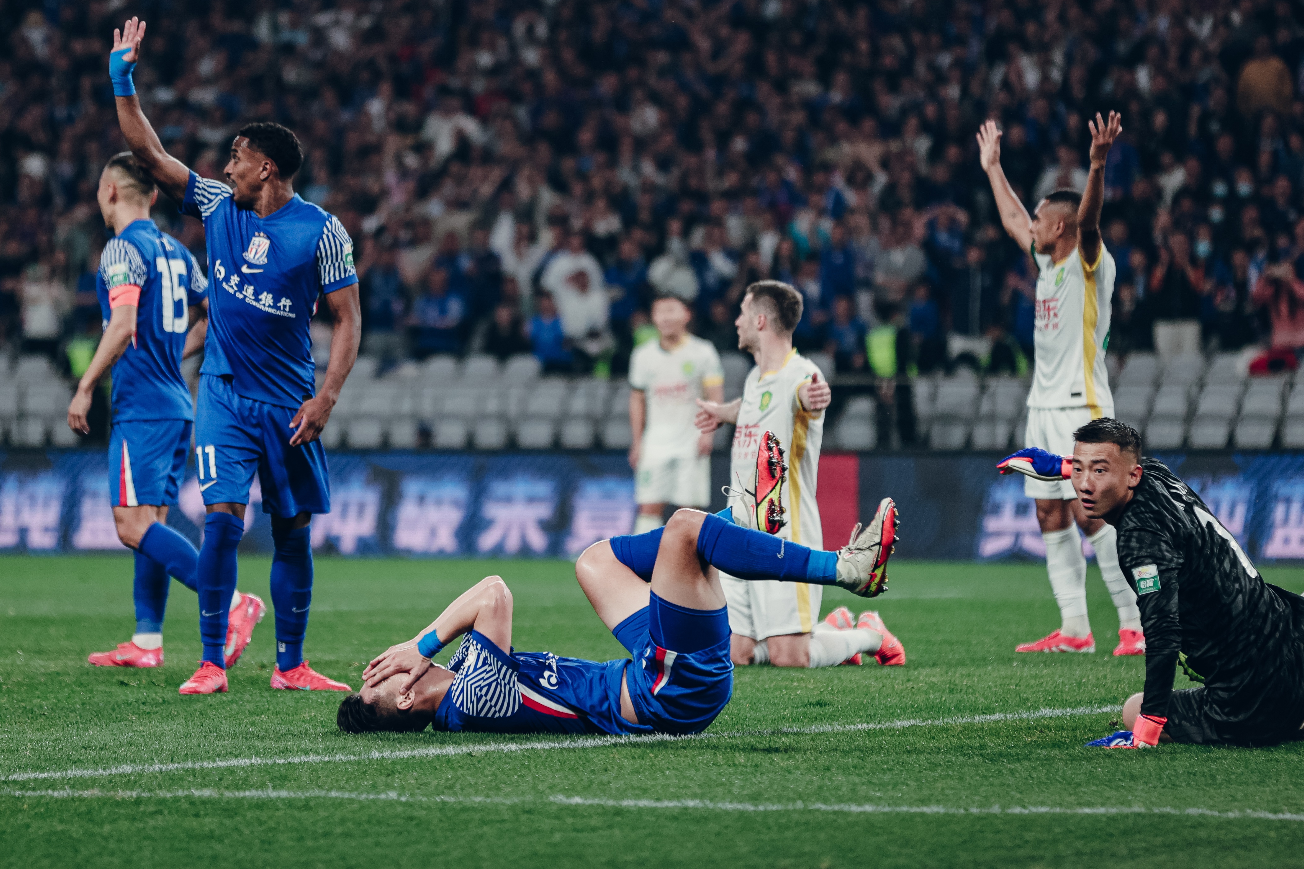 本輪中超申花2比2戰(zhàn)平國(guó)安,上半場(chǎng)補(bǔ)時(shí)階段,申花前場(chǎng)任意球,韓佳奇出擊稍慢一步,拳擊蔣圣龍面部,主裁麥麥提江判罰點(diǎn)球+韓佳奇黃牌。蔣圣龍?jiān)诮邮苤委熀蟠驖M了全場(chǎng)比賽。