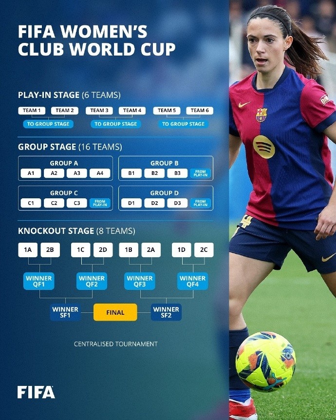 女足世俱杯具體的賽制方面,19個參賽名額分為13個小組賽名額以及6個分組資格賽名額,亞足聯(lián)、非洲足聯(lián)、中北美及加勒比海足聯(lián)和南美足聯(lián)各有兩個小組賽名額,歐足聯(lián)則有五個小組賽名額,分組資格賽名額則六大足聯(lián)各有1個。女足世俱杯分為三個階段,首先是分組資格賽階段(play-in),6支球隊分三組進(jìn)行單回合淘汰賽,決出3個晉級小組賽的名額。隨后是16支球隊(13支小組賽球隊+3支分組資格賽勝者)組成的小組賽階段,16隊分為四組,每組前兩名球隊晉級淘汰賽。淘汰賽階段有8支球隊參加,采取單回合淘汰賽賽制。