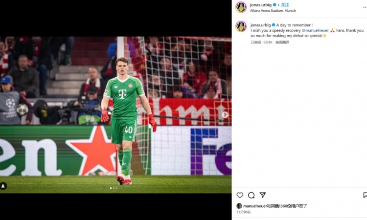 烏爾比希:“值得銘記的一天!我希望諾伊爾早日康復(fù),感謝球迷們讓我的首秀如此特別?!?/p>