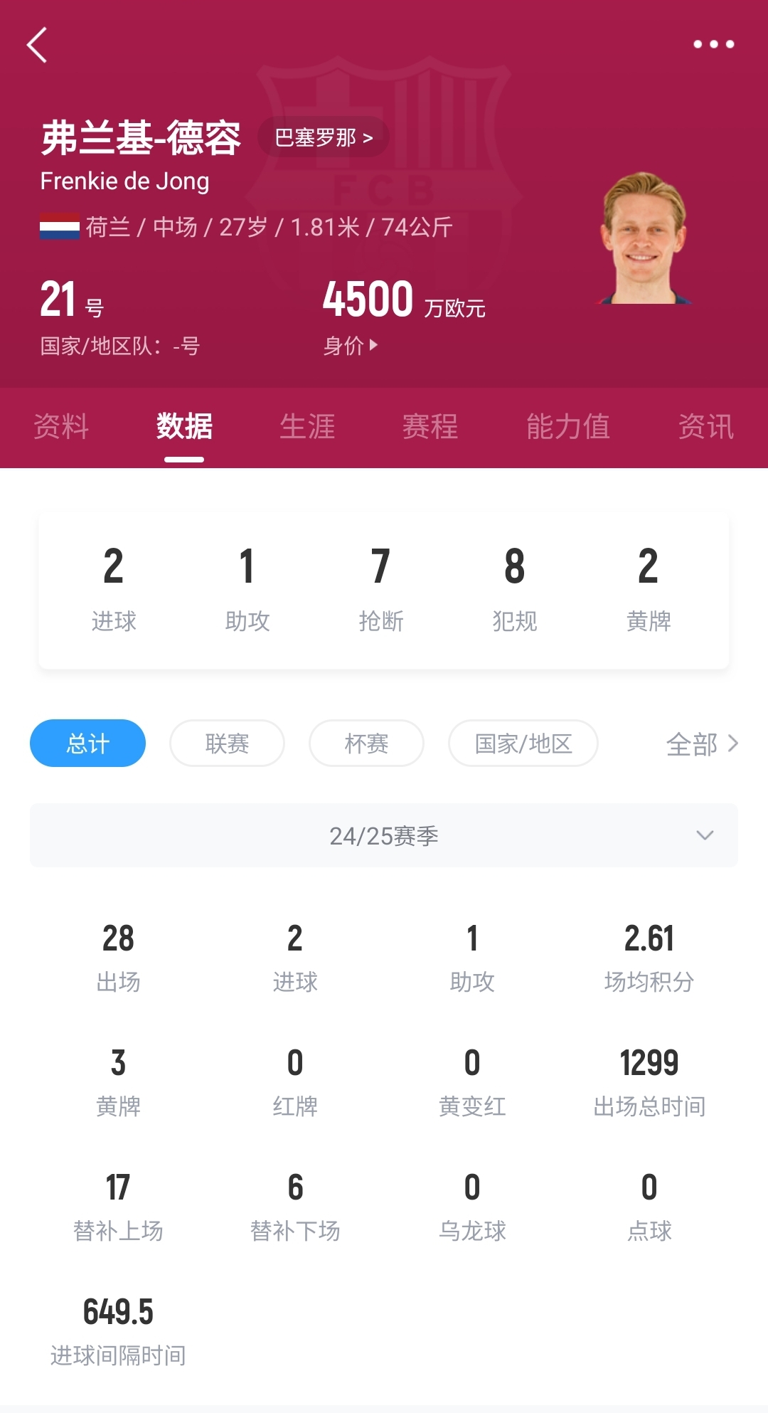 在新合同中,俱樂部不再考慮此前拖欠球員的薪資,德容在2020年時與巴薩續(xù)約,并將部分薪資延期發(fā)放,以幫助俱樂部。