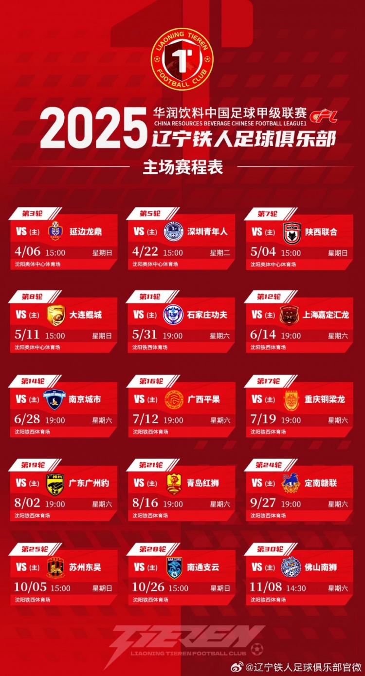 2025賽季遼寧鐵人一線隊(duì)大名單、主場(chǎng)賽程