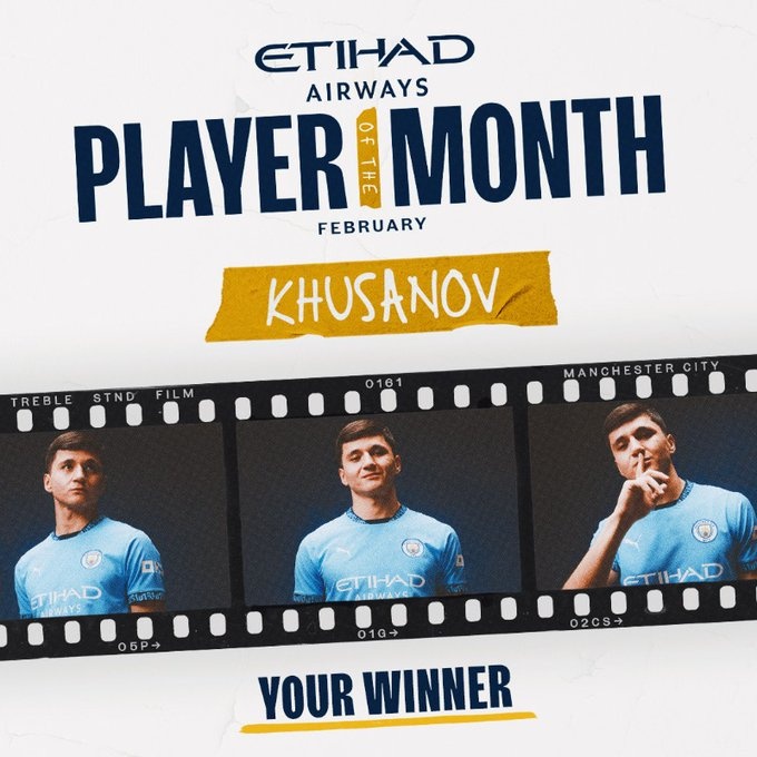 3月7日訊 曼城官方消息,俱樂部冬窗新援胡桑諾夫當(dāng)選球隊(duì)2月最佳球員。