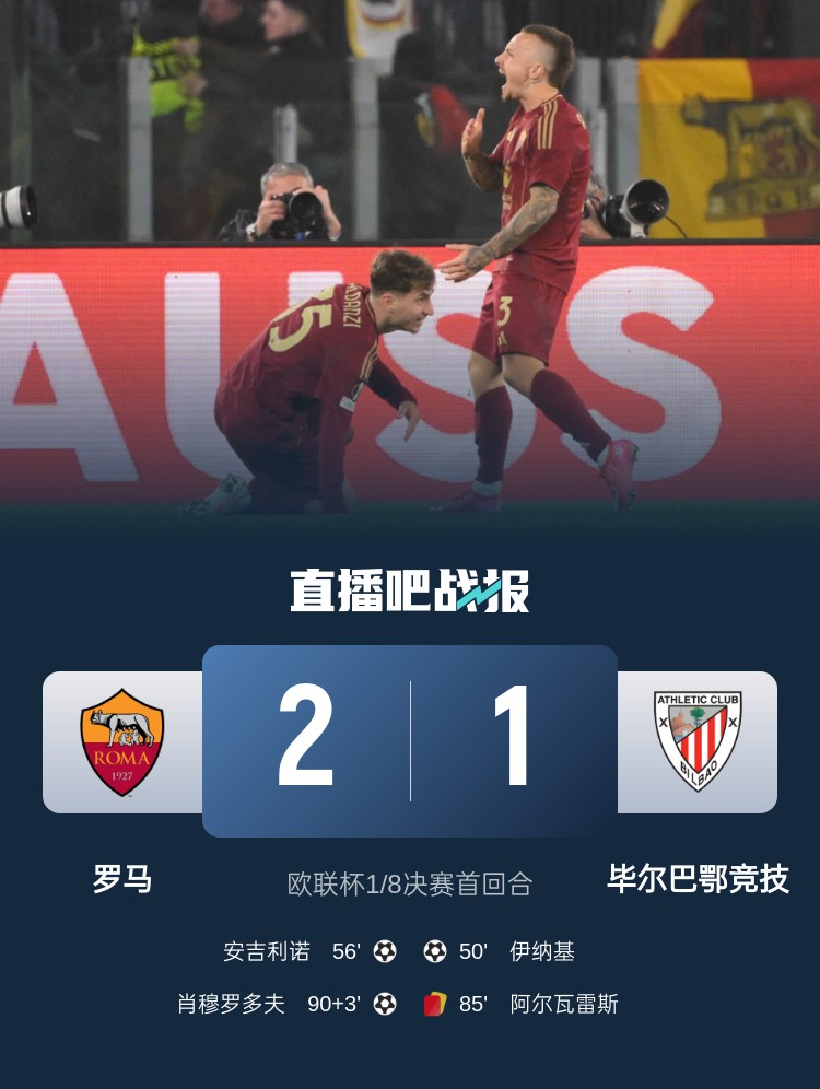 03月07日訊 歐聯(lián)杯1/8決賽首回合,羅馬主場2-1讀秒絕殺畢爾巴鄂競技,占得先機。
