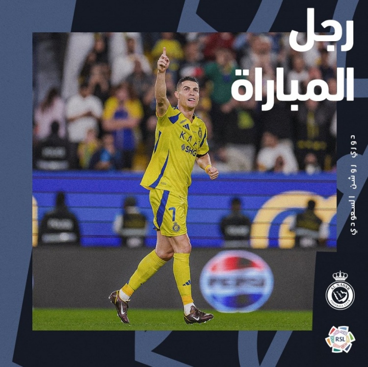 官方:C羅當(dāng)選利雅得勝利2-2利雅得青年人全場最佳球員