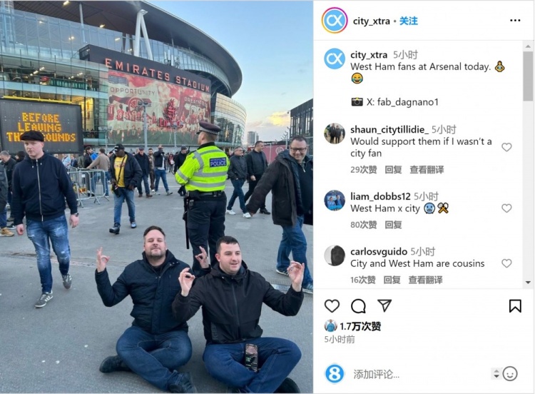 西漢姆球迷打坐慶祝戰(zhàn)勝阿森納,哈蘭德社媒點(diǎn)贊
